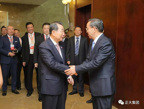 9月12日,“2018世界500強對話湖北”圓桌會議結束后,湖北省委書記蔣超良、省長王曉東在武漢東湖賓館梅嶺2號會見了正大集團資深董事長謝國民一行。